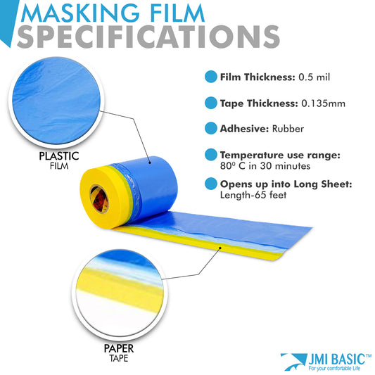 JMIBASIC Pre taped Masking Paper - Painters Plastic Sheeting Paint Tape for Auto body